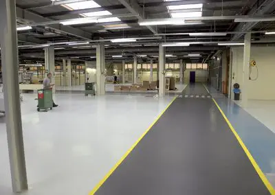New Brand heeft bij Bosch Packaging in Schiedam een coating vloer gelegd. bij Bosch Packaging worden verpakking machines gemaakt. deze vloer wordt zwaarbelast met heftruck en zwaar gereedschap. New Brand gietvloeren heeft bij Bosch Packaging een vloer coating aangebracht deze vloer coating is afgelakt met een zeer sterke industrie lak laag,